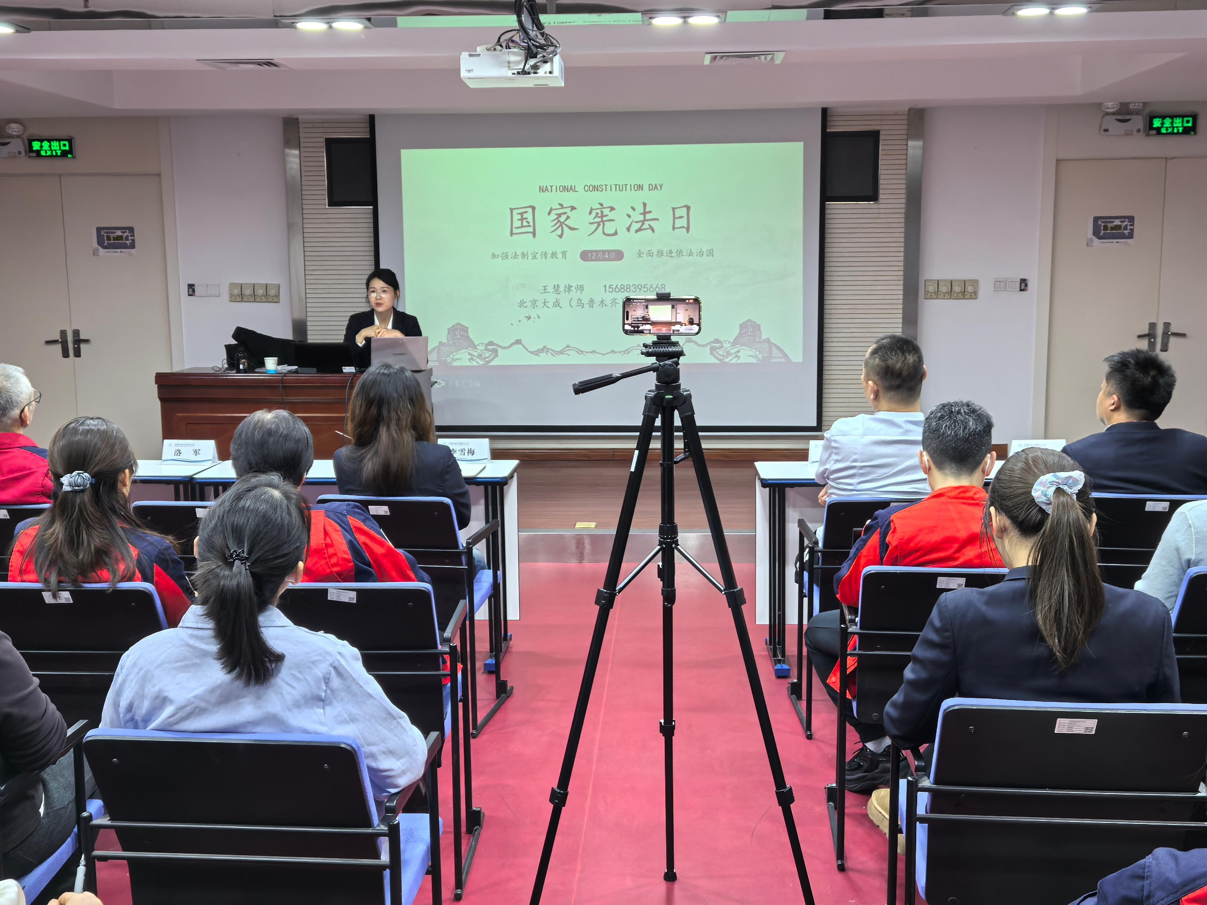 (通訊員/攝影 丁天立)《憲法》是我國的根本大法,是治國安邦的總章程,具有最高法律地位、法律權(quán)威、法律效力。2024年12月1日至7日是第七個“憲法宣傳周”。為大力弘揚憲法精神,維護憲法權(quán)威,12月6日,風(fēng)能公司特邀北京大成(烏魯木齊)律師事務(wù)所王慧律師開展了憲法知識專題培訓(xùn)。