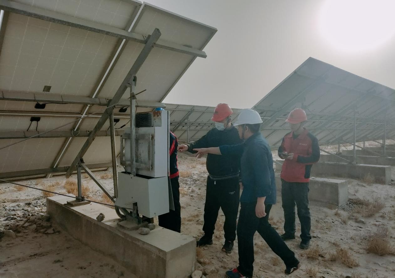 (通訊員 萬高峰/攝影 肖廣民)為進(jìn)一步加強(qiáng)場站安全生產(chǎn)管理,確保和田區(qū)域光伏電站安全穩(wěn)定運行,近日,風(fēng)能公司黨委委員、副總經(jīng)理滿強(qiáng)及安全總監(jiān)朱偉剛帶領(lǐng)安全環(huán)保部安全檢查小組深入于田光伏電站,開展了細(xì)致全面的安全檢查工作。電站相關(guān)負(fù)責(zé)人陪檢。