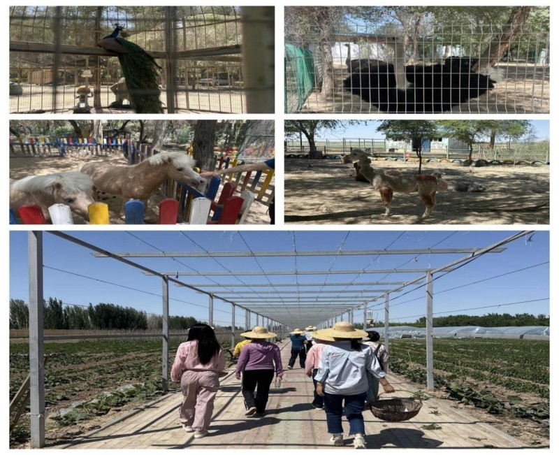 午后,員工們興致勃勃地參觀了農(nóng)場小小動物園,近距離觀察了駱駝、綿羊等新疆特色動物,與羊駝、矮腳馬等萌寵互動。隨后大家進入農(nóng)場采摘園,采摘黃瓜等當季蔬菜。在與動物互動、采摘勞作過程中,員工們不僅放松了身心,也在互相協(xié)作中加深了默契。