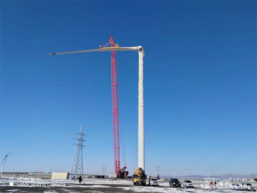 作為疆內(nèi)較早建成的風(fēng)電場之一,達(dá)坂城風(fēng)電一場承載著區(qū)域風(fēng)電產(chǎn)業(yè)起步與發(fā)展的厚重記憶。歷經(jīng)多年運(yùn)行,原有機(jī)組逐漸面臨設(shè)備老化、發(fā)電效率下滑等問題,為破解發(fā)展瓶頸,公司果斷啟動(dòng)升級(jí)改造工程,即拆除低效舊機(jī)組,引進(jìn)金風(fēng)科技7.5兆瓦較大容量風(fēng)電機(jī)組。該項(xiàng)目自啟動(dòng)以來便面臨多重挑戰(zhàn),特別是進(jìn)入冬季以來,達(dá)坂城區(qū)域風(fēng)力常達(dá)5級(jí)以上,惡劣天氣不僅給施工人員帶來身體考驗(yàn),更對(duì)吊裝作業(yè)的安全性和精準(zhǔn)度提出極高要求。加之冬季白晝時(shí)間短,有效作業(yè)窗口期大幅壓縮,進(jìn)一步增加了施工難度。為確保項(xiàng)目推進(jìn),項(xiàng)目團(tuán)隊(duì)提前研判區(qū)域氣候規(guī)律,制定針對(duì)性冬季施工方案,將科學(xué)組織與精細(xì)管理貫穿始終。從塔筒起吊、機(jī)艙就位到葉片精準(zhǔn)對(duì)接,每一個(gè)環(huán)節(jié)都凝聚著建設(shè)者的智慧與堅(jiān)守。同時(shí),為確保巨大部件在風(fēng)雪中平穩(wěn)吊運(yùn)至預(yù)定位置,項(xiàng)目組全程落實(shí)風(fēng)險(xiǎn)管控措施,細(xì)化安全預(yù)案,對(duì)設(shè)備狀態(tài)、作業(yè)環(huán)境進(jìn)行實(shí)時(shí)監(jiān)測,最終成功實(shí)現(xiàn)“零事故、零傷害”的安全生產(chǎn)目標(biāo)。