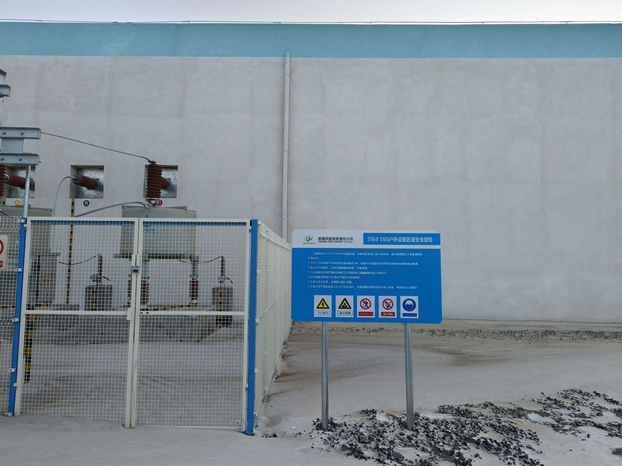 安裝開始前,場站提前對運維人員進(jìn)行安全技術(shù)交底,開具工作票。安裝中,工作班成員默契配合,分組分區(qū)域負(fù)責(zé),做好全過程安全監(jiān)督,穩(wěn)步推進(jìn)安裝工作。經(jīng)過兩天緊張有序地安裝,共完成警告類、禁止類、提示類標(biāo)識牌200余塊,涉及天樞110kV變電站內(nèi)35kV高壓室、10kV高壓室、35kV SVG室、110kV GIS室、主變區(qū)域、儲能區(qū)域等多個場所。
