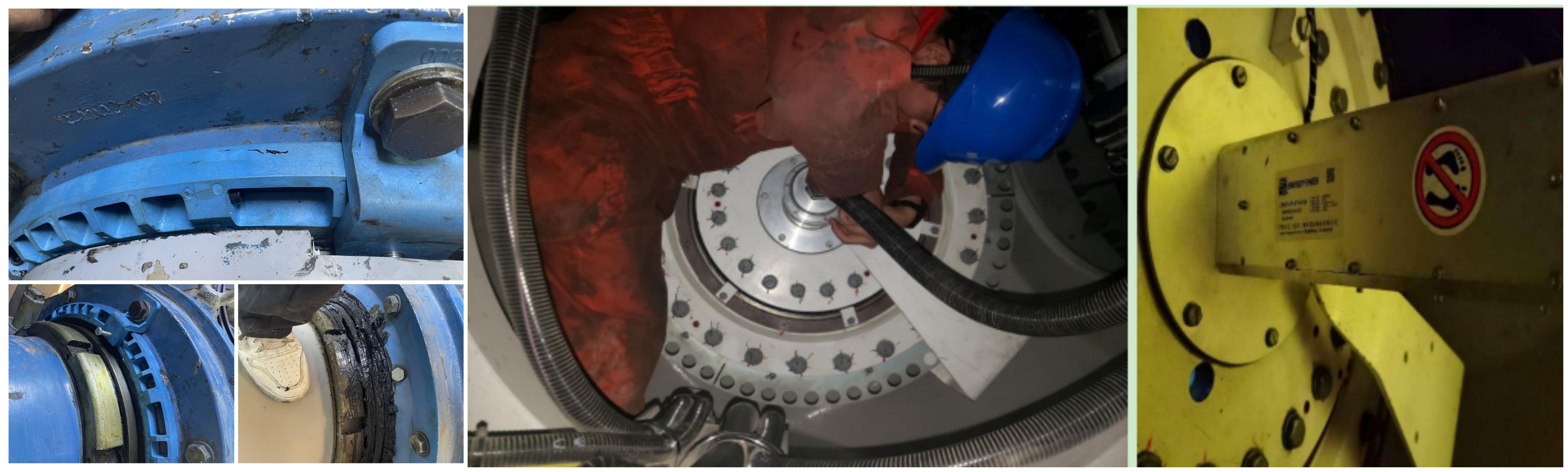 此次在開展常規(guī)檢修和消缺的基礎上,還同步實施了多個技改項目,檢修班組堅持從設備小技小改入手,提高設備運行穩(wěn)定性,降低設備檢修復雜性。因本次技改涉及的作業(yè)面廣、交叉點多,檢修班組在保證安全、質(zhì)量的同時,必須統(tǒng)籌考慮,慎之又慎,確保各項工作齊頭并進,按時完成。各參檢人員緊盯任務不放松,克服時間緊、工作量大、安全隱患多等困難,扎實開展技改工作,保質(zhì)保量地完成了非固態(tài)金屬滑環(huán)技改、主軸軸承密封等技術(shù)改進,著力解決了一批影響工作效率、發(fā)電能力、安全隱患的技術(shù)難題。