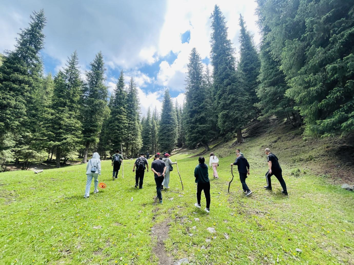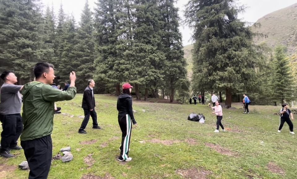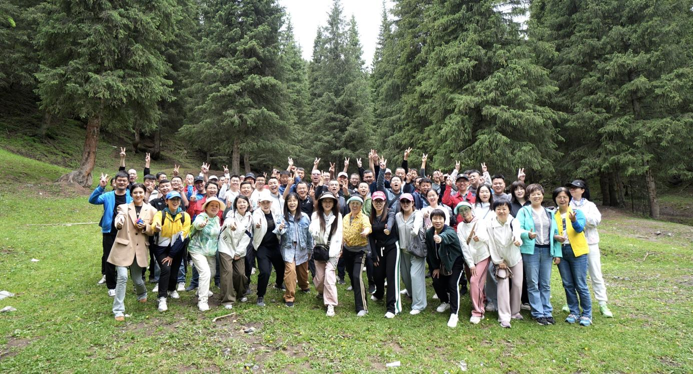 天山草場草色如茵、綠意盎然,如畫的風(fēng)景令人心曠神怡。大家健步走在徒步大道上,呼吸著新鮮的空氣,感受著大自然的風(fēng)光。一路上,大家邊走邊聊,時(shí)而駐足欣賞,時(shí)而選景拍照,歡歌笑語如影隨形。本次徒步行程近5公里,大家互相鼓勵、一往無前,經(jīng)過一個半小時(shí)的努力,終于順利抵達(dá)目的地。