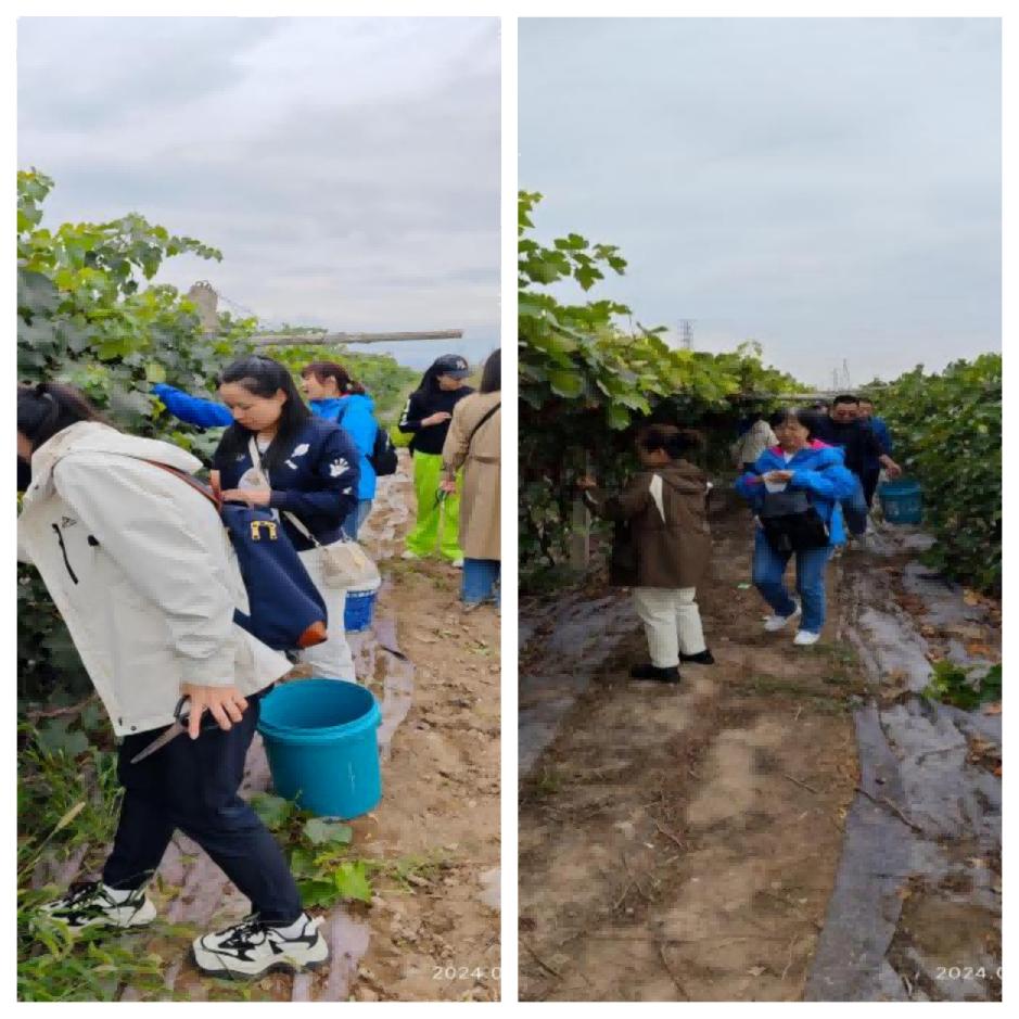 活動第二站,來到三坪農場玫瑰香葡萄采摘園。葡萄園內一串串飽滿多汁、紫瑩瑩的葡萄掛滿了藤蔓,散發(fā)著誘人的果香。大家拿起工具井然有序的開始了采摘活動。眾人三五成群,在田間地頭分工合作、密切配合,摘果、裝桶、搬運.....大家一邊分享采摘技巧,一邊饒有興致地暢談生活中的趣事,歡聲笑語在整個采摘園回蕩。