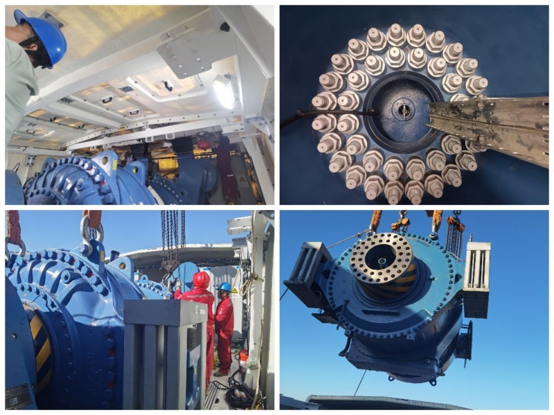 5月正值春季大風(fēng)頻發(fā),這給E2機(jī)組齒輪箱恢復(fù)工作帶來巨大挑戰(zhàn)。面對嚴(yán)峻形勢,風(fēng)電場積極應(yīng)對,不斷優(yōu)化工作方案,精心調(diào)整吊裝策略,并成立專項工作小組。面對時間緊、任務(wù)重等諸多不利條件,小組人員嚴(yán)陣以待、全力以赴投入到更換工作中。吊裝過程中,工作人員緊盯風(fēng)速變化,精準(zhǔn)抓住風(fēng)速6米/秒以下的短暫窗口期,爭分奪秒提前拆卸齒輪箱附件。地面與機(jī)艙作業(yè)人員密切配合,嚴(yán)格把控每一個關(guān)鍵環(huán)節(jié)。從齒輪箱連接油管、傳感器、主軸連接螺栓,到齒輪箱彈性支撐的安裝工藝,每一步操作都細(xì)致入微、嚴(yán)謹(jǐn)規(guī)范。經(jīng)過運(yùn)維人員12小時的艱苦奮戰(zhàn),E2齒輪箱吊裝更換工作順利完成。