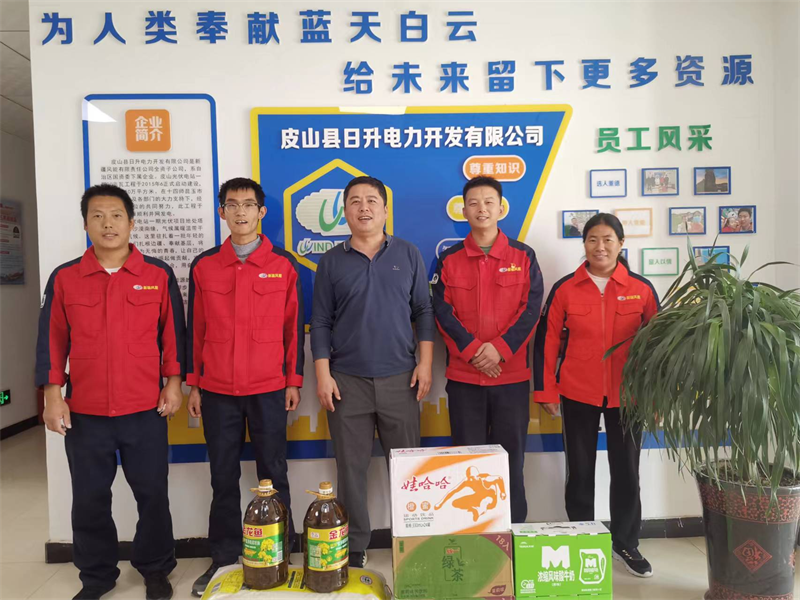 黃樂同志一行首先來到場站,實(shí)地了解和田區(qū)域光伏電站的生產(chǎn)運(yùn)行情況,對和田區(qū)域光伏電站的整體生產(chǎn)情況表示肯定。他強(qiáng)調(diào),場站要嚴(yán)格落實(shí)安全生產(chǎn)責(zé)任,落實(shí)安全防范措施,做好光伏發(fā)電設(shè)備的日常維護(hù)保養(yǎng)工作,干好每一件事,發(fā)好每一度電,為公司完成年度目標(biāo)添磚加瓦。隨后,黃樂同志代表公司向大家送上了問候與祝福,并發(fā)放慰問品,讓大家感受到了公司的關(guān)懷。