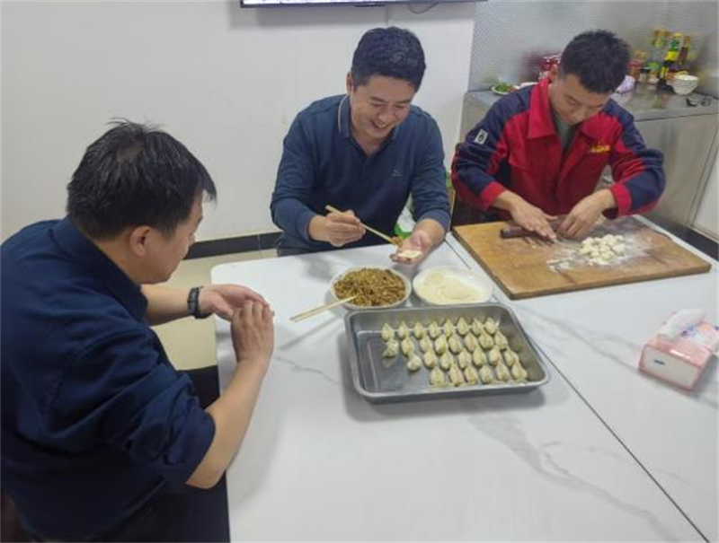 活動(dòng)最后,黃樂同志和第四黨支部的黨員以及電站職工一起包了餃子,大家和面、調(diào)餡,分工有序,忙而不亂,一邊包著餃子,一邊還分享著自己包餃子的心得,大家邊說邊干,互相幫忙,活動(dòng)現(xiàn)場熱鬧非凡。一盤盤餃子順利下鍋,大家一同坐下吃餃子,分享著勞動(dòng)成果,熱騰騰的餃子吃在嘴里,暖在心頭,現(xiàn)場一片歡聲笑語、其樂融融。